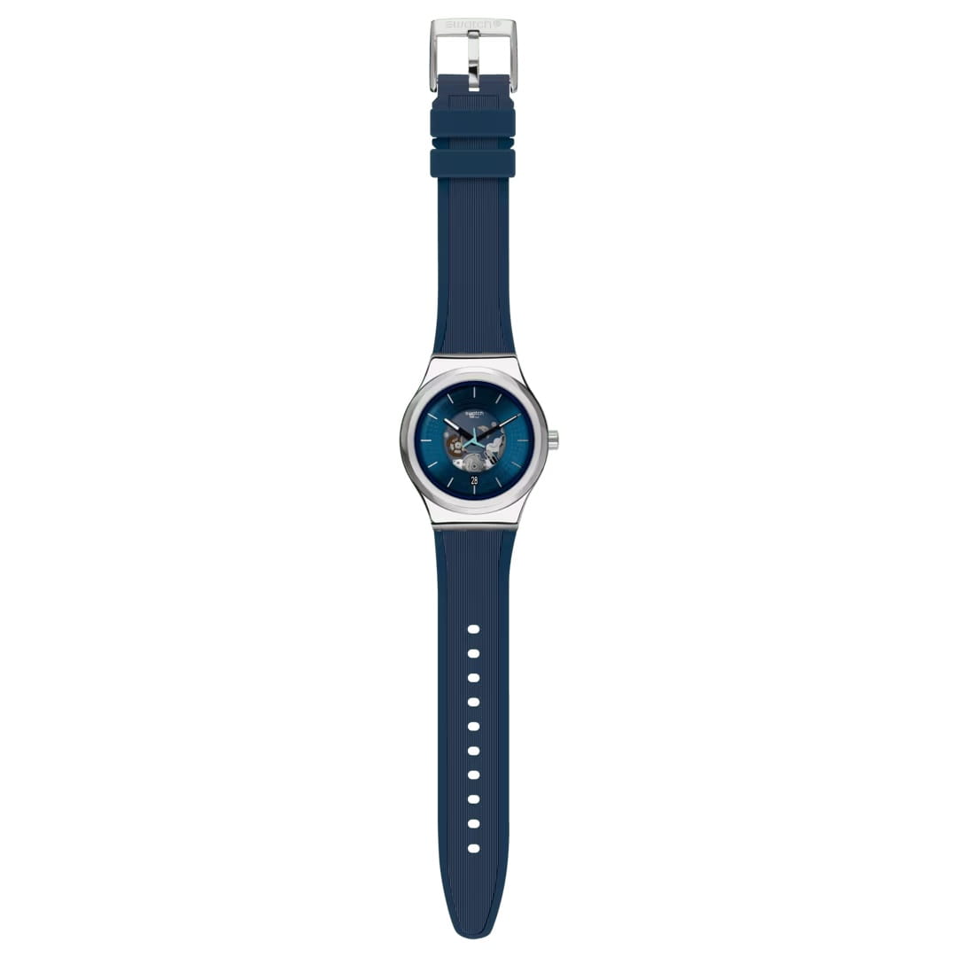 Часы Swatch YIS430 — это стильный и современный аксессуар для тех, кто ценит надежность и комфорт. Эти механические часы имеют синий циферблат радиальной полировкой и прозрачной вставкой. Стрелки с люминесцентным покрытиемЛюминесцентное покрытиеПозволяет считывать показания времени в темноте. Производители наносят на стрелки, часовые индексы, безель или поверхность циферблата светонакопительный состав, дающий холодное свечение.. Секундная стрелка необычной формы и бирюзового цвета. Окошко календаря расположено в положении 3 часов. Блестящий корпус из нержавеющей стали, а через заднюю крышку с цифровым принтом просматривается механизм SISTEM51. Модель оснащена автоматическим механизмом Sistem51, который состоит всего из 51 детали и имеет запас хода 90 часов. Дополняет модель матовый синий ремешок из резины с классической застежкой. Водозащита 30 метров позволяет защитить корпус от случайных брызг или капель дождя, что делает часы практичными для повседневного использования. Эти часы станут ярким акцентом в вашем образе.