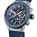 Хронограф TAG Heuer Carrera с синим скелетонизированным циферблатом и большим стальным корпусом диаметром 45 мм. Уникальное гоночное наследие коллекции выражено синим ремешком из кожи аллигатора с подкладкой из черного каучука. TAG Heuer Carrera CBG2A11.FC6460, механический механизм (автоматический калибр) с высокой точностью. Сапфировое стекло устойчивое к появлению царапин, обладающее высокой прозрачностью. Класс водозащиты: 100 метров, позволит плавать, нырять и заниматься другими водными видами спорта. Корпус часов изготовлен из стали, серебристого цвета.