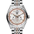 Часы TAG Heuer Carrera Astronomer WBX2111.BD0002 созданы для стильных мужчин. Механический механизм (автоматический калибр) с высокой точностью и с 50-часовым запасом хода. Сапфировое стеклоСапфировое стеклоПрочный и надёжный материал из кристалла сапфира синтетического происхождения, характеризующийся особой твёрдостью и устойчивостью к царапинам и повреждениям. устойчивое к появлению царапин, обладающее высокой прозрачностью. Класс водозащиты: 100 метров, позволит плавать, нырять и заниматься другими водными видами спорта.  Стрелки с люминесцентным покрытиемЛюминесцентное покрытиеПозволяет считывать показания времени в темноте. Производители наносят на стрелки, часовые индексы, безель или поверхность циферблата светонакопительный состав, дающий холодное свечение. позволяют легко считывать время даже в условиях недостаточного освещения. Завинчивающаяся задняя крышка украшена специальной гравировкой с изображением обсерватории и звёздного неба. По центру, у отметки «6 часов», расположен серебристый диск указателя фаз Луны, обрамлённый оригинальной шкалой, которая позволяет визуально следить за ходом лунного цикла. Часы оснащены браслетом из нержавеющей стали с 18-ти каратным золотом 5N и с застёжкой-бабочка с кнопкамиЗастёжка "бабочка"Такой вид застёжки дополняется предохранителями, помогающими избежать случайного раскрытия браслета. Обладают изящным исполнением. , которые гарантируют комфортную посадку на запястье. Модель выпущена ограниченной серией 500 экземпляров. TAG Heuer Carrera олицетворяет непринужденную элегантность и представляет свежий взгляд на настоящую классику.