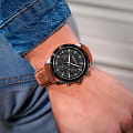 Американские мужские часы Timberland Parkman TDWGF0029002 имеют кварцевый механизм с высокой точностью. Класс водозащиты: 50 метров, позволит защитить корпус от случайных брызг или капель дождя. Корпус часов изготовлен из стали. Прочное минеральное стеклоМинеральное стеклоМинеральное стекло представляет собой искусственно выращенный минерал кварца. Такое стекло отличается особой устойчивостью к повреждениям и царапинам. Уступает по некоторым качествам сапфировому стеклу.. Стрелки c люминесцентным покрытиемЛюминесцентное покрытиеПозволяет считывать показания времени в темноте. Производители наносят на стрелки, часовые индексы, безель или поверхность циферблата светонакопительный состав, дающий холодное свечение.. БезельБезельВнешний ободок, закрепляющий стекло. В спортивных часах так называется поворотное кольцо с делениями на циферблате, выполняет роль таймера – замеряет отрезки времени на шкале. Неподвижный безель – элемент декора. Однонаправленно вращающийся безель на дайверских часах позволяет фиксировать моменты погружения и выныривания на поверхность. из алюминия с PVD-покрытиемPVDУльтратонкое покрытие наносится в технике вакуумного напыления, сочетает в себе нитрид титана особой прочности со слоем золота или оксида хрома. Несёт в себе декоративную или защитную функцию.. Кожаный ремешок на стандартной застежке.