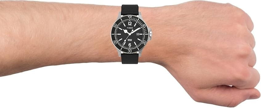 Часы Timex TW2V27000 — это стильный аксессуар, сочетающий в себе элегантность и функциональность, который станет прекрасным дополнением к вашему образу. Эти часы произведены в США и оснащены надежным кварцевым механизмом, обеспечивающим точность хода. Корпус выполнен из нержавеющей стали, что придает изделию прочность и долговечность. Черный циферблат украшен метками в виде штрихов и арабских цифр, а также оснащен подсветкой Indiglo, стрелки часов также с люминесцентным покрытиемЛюминесцентное покрытиеПозволяет считывать показания времени в темноте. Производители наносят на стрелки, часовые индексы, безель или поверхность циферблата светонакопительный состав, дающий холодное свечение., что позволяет легко считывать время в темноте. Минеральное стеклоМинеральное стеклоМинеральное стекло представляет собой искусственно выращенный минерал кварца. Такое стекло отличается особой устойчивостью к повреждениям и царапинам. Уступает по некоторым качествам сапфировому стеклу. защищает циферблат от царапин и повреждений. А вращающийся безельБезельВнешний ободок, закрепляющий стекло. В спортивных часах так называется поворотное кольцо с делениями на циферблате, выполняет роль таймера – замеряет отрезки времени на шкале. Неподвижный безель – элемент декора. Однонаправленно вращающийся безель на дайверских часах позволяет фиксировать моменты погружения и выныривания на поверхность. этих часов с черным PVDPVDУльтратонкое покрытие наносится в технике вакуумного напыления, сочетает в себе нитрид титана особой прочности со слоем золота или оксида хрома. Несёт в себе декоративную или защитную функцию. покрытием, что придает им современный и устойчивый к износу вид. Кожаный ремешок с классической застежкой обеспечивает комфортное ношение в течение всего дня. Водозащита уровня 50WR позволяет не беспокоиться о случайных брызгах или кратковременном контакте с водой. Кроме того, часы оснащены календарем, отображающим текущее число, что добавляет дополнительное удобство в использовании. Габаритные размеры корпуса составляют 42 мм в диаметре, а ширина ремешка — 18 мм, что делает эти часы идеальными для повседневного ношения.