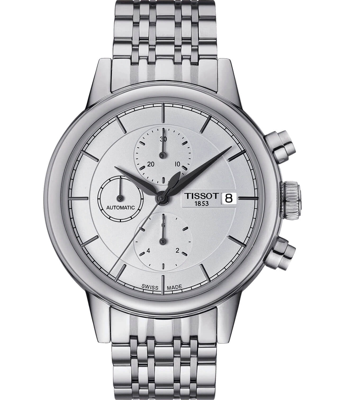 Tissot Carson — это вневременные часы, которые будут великолепно смотреться в любой ситуации, станут идеальным аксессуаром на важных мероприятиях и помогут не пропустить незабываемые моменты жизни Классический стиль модели никогда не выходит из моды, а роскошный характер ей придает элегантный дизайн циферблата и тонкие удлиненные стрелки, четко отмеряющие временные промежутки