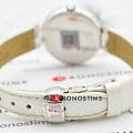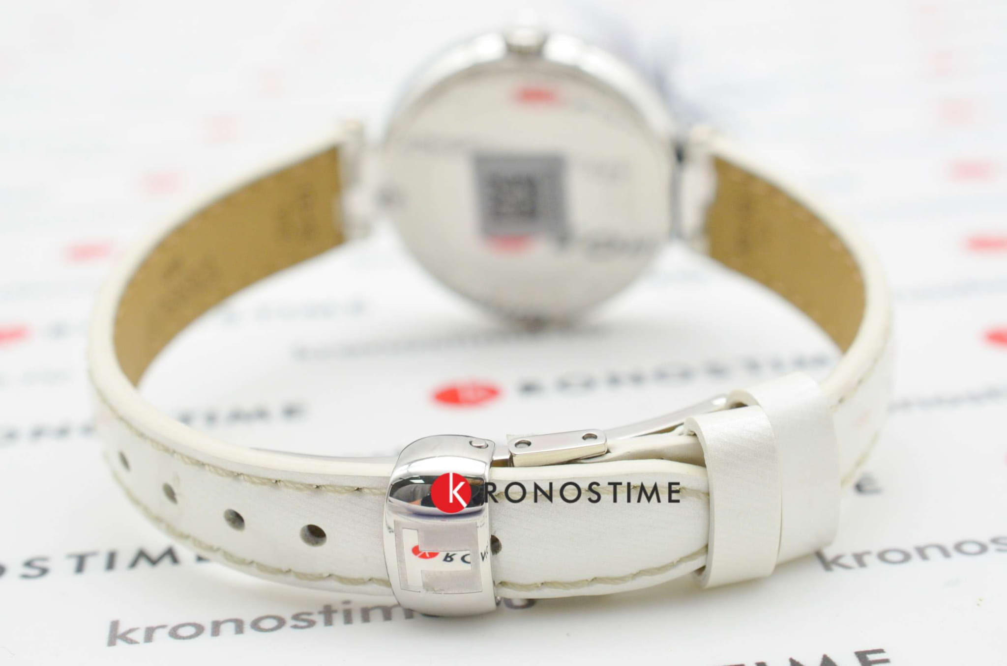 Белоснежное исполнение наручных часов делает их универсальным аксессуаром для любого случая. Тонкий ремешок из натуральной кожи является идеальным вариантом ля лаконичного круглого циферблата, обратите внимание на необычное крепление. Кварцевый калибр ETA F03.111 с 3 камнями в механизме. Водонепроницаемость при давлении 5 бар на глубине 50 метров. EOLEOLПредставляет собой систему, уведомляющую владельца часов о необходимости замены элемента питания. За 2 недели до полного разряда батарейки секундная стрелка перестаёт ходить чётко и начинает перепрыгивать на 3-4 деления.. Отображение текущей даты. Габариты: 30 x 30 x 6,35 мм.