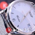 Лаконичные наручные часы идеально подойдут как к деловому костюму, так и к повседневному образу благодаря минималистичному оформлению и использованию сдержанных тонов - серебристого и белого. В дизайне аксессуара можно уловить винтажные черты. Кварцевый высокоточный механизм ETA F06.111. Сапфировое стекло. Оригинальный стальной браслет миланского плетения. . Апертура даты, индикатор EOLEOLПредставляет собой систему, уведомляющую владельца часов о необходимости замены элемента питания. За 2 недели до полного разряда батарейки секундная стрелка перестаёт ходить чётко и начинает перепрыгивать на 3-4 деления.. Габариты: 40 x 40 x 10,7 мм.