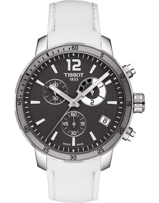 TISSOT T0954491706700 T-Sport Quickster Quartz Chronograph - мужские кварцевые наручные часы Корпус этих часов среднего размера (42 мм) и выполнен из нержавеющей стали L316 металлического цвета Модель TISSOT T0954491706700 T-Sport Quickster Quartz Chronograph имеет устойчивое к царапинам сапфировое стекло, ремешок из натурального каучука белого цвета, серый циферблат Калибр механизма: ETA G10212 Класс водозащиты: 100 м / 10 АТМ (разрешается плавание и ныряние без акваланга) Дополнительные функции и особенности: отображение числа, хронограф (секундомер) Полная заводская комплектация TISSOT: оригинальные часы, фирменная коробка, инструкция, сервисная книжка, роман о часовой фабрике, миникаталог, замшевый фирменный чехол черного цвета для хранения и/или переноски часов, кассовый и товарный чеки Международная гарантия 2 года Производство и сборка: Швейцария