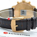 Внушительный корпус 42 мм имеет PVD-покрытиеPVDУльтратонкое покрытие наносится в технике вакуумного напыления, сочетает в себе нитрид титана особой прочности со слоем золота или оксида хрома. Несёт в себе декоративную или защитную функцию. цвета розового золота, модель сочетает в себе классические и спортивные элементы. Золотистые метки и стрелки чётко выделяются на белом фоне циферблата с миниатюрными счётчиками хронографаХронографФункция позволяет измерять отрезки времени с особой точностью: часы, минуты, секунды. Верным признаком хронографа является наличие на циферблате 3 дополнительных окошек-счётчиков.. Часы оснащены кварцевым калибром ETA G10.211 с высокой точностью хода. Сапфировое стекло. Водонепроницаемость 100 метров. Секундомер, тахиметрическая шкалаТахиметрРазмеченная шкала, располагается на ободке или безеле часов. Тахиметр позволяет рассчитать скорость на определённом участке пути, расстояние измеряется в километрах или милях., окошко даты. Габариты: 42 x 42 x 10,7 мм.