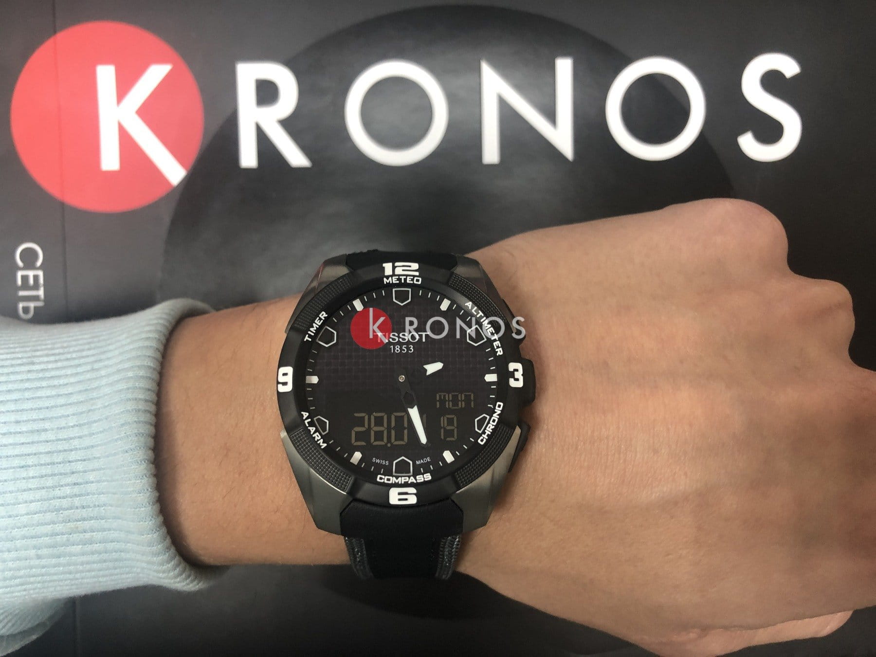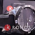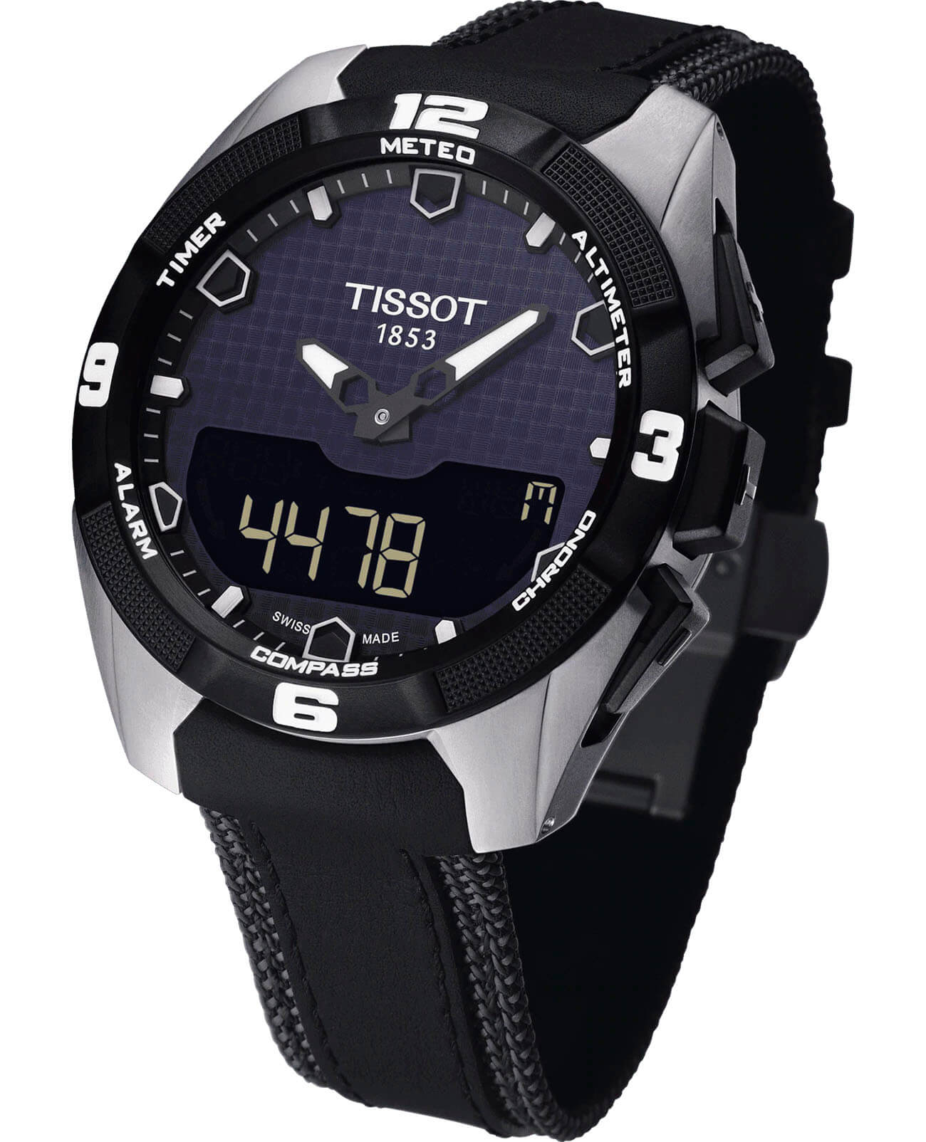 Современная модель в спортивном и динамичном стиле оснащена удобным экраном с тактильным сапфировым стеклом. Часы работают от кварцевого механизма ETA E84.301, также они способны получать питание от . Прибор для измерения времени превращён в многофункциональный мини-компьютер, есть опции альтиметра, компаса, таймера, будильника, вечного календаряВечный календарьКлассическое часовое усложнение, представляющее собой календарь, рассчитанный на несколько лет вперёд (стандартно – до 2099 года). Определяет текущую дату, день недели, месяц., хронографаХронографФункция позволяет измерять отрезки времени с особой точностью: часы, минуты, секунды. Верным признаком хронографа является наличие на циферблате 3 дополнительных окошек-счётчиков.. Титановый корпус с чёрным PVD-покрытиемPVDУльтратонкое покрытие наносится в технике вакуумного напыления, сочетает в себе нитрид титана особой прочности со слоем золота или оксида хрома. Несёт в себе декоративную или защитную функцию. минимизирует негативное воздействие магнитных полей. Габариты: 45 x 45 x 13 мм.