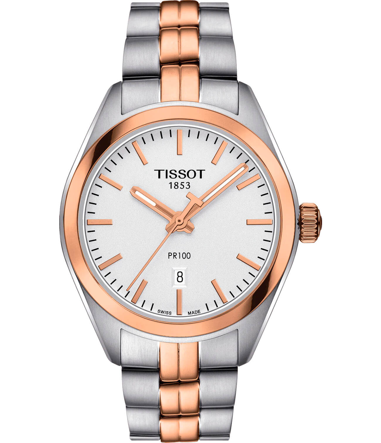 Женские наручные часы из коллекции PR 100 имеют надпись "Swiss Made" на циферблате, что обозначает их принадлежность к аксессуарам исключительно высокого качества.