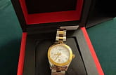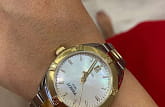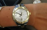 Наручные часы обладают классическим дизайном, за счёт чего аксессуар можно носить как с деловым костюмом на работу, так и с вечерним нарядом. Модель из нержавеющей стали имеет PVD-покрытиеPVDУльтратонкое покрытие наносится в технике вакуумного напыления, сочетает в себе нитрид титана особой прочности со слоем золота или оксида хрома. Несёт в себе декоративную или защитную функцию. в цвете жёлтого золота, что привносит в общее исполнение оттенок роскоши. Кварцевый швейцарский механизм ETA 955.412 с высокой точностью хода. Люминесцентная подсветкаЛюминесцентное покрытиеПозволяет считывать показания времени в темноте. Производители наносят на стрелки, часовые индексы, безель или поверхность циферблата светонакопительный состав, дающий холодное свечение.. Сапфировое стекло. . Календарь. Габариты: 36 x 36 x 9 мм.