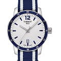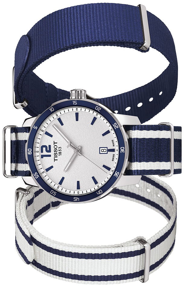 TISSOT T0954101703700 T-Sport Quickster Quartz - мужские кварцевые наручные часы Корпус этих часов среднего размера (40 мм) и выполнен из нержавеющей стали L316 металлического цвета Модель TISSOT T0954101703700 T-Sport Quickster Quartz имеет устойчивое к царапинам сапфировое стекло, тканевый ремешок серого цвета, белый циферблат Калибр механизма: ETA F06111 Класс водозащиты: 100 м / 10 АТМ (разрешается плавание и ныряние без акваланга) Дополнительные функции и особенности: отображение числа Полная заводская комплектация TISSOT: оригинальные часы, фирменная коробка, инструкция, сервисная книжка, роман о часовой фабрике, миникаталог, замшевый фирменный чехол черного цвета для хранения и/или переноски часов, кассовый и товарный чеки Международная гарантия 2 года Производство и сборка: Швейцария