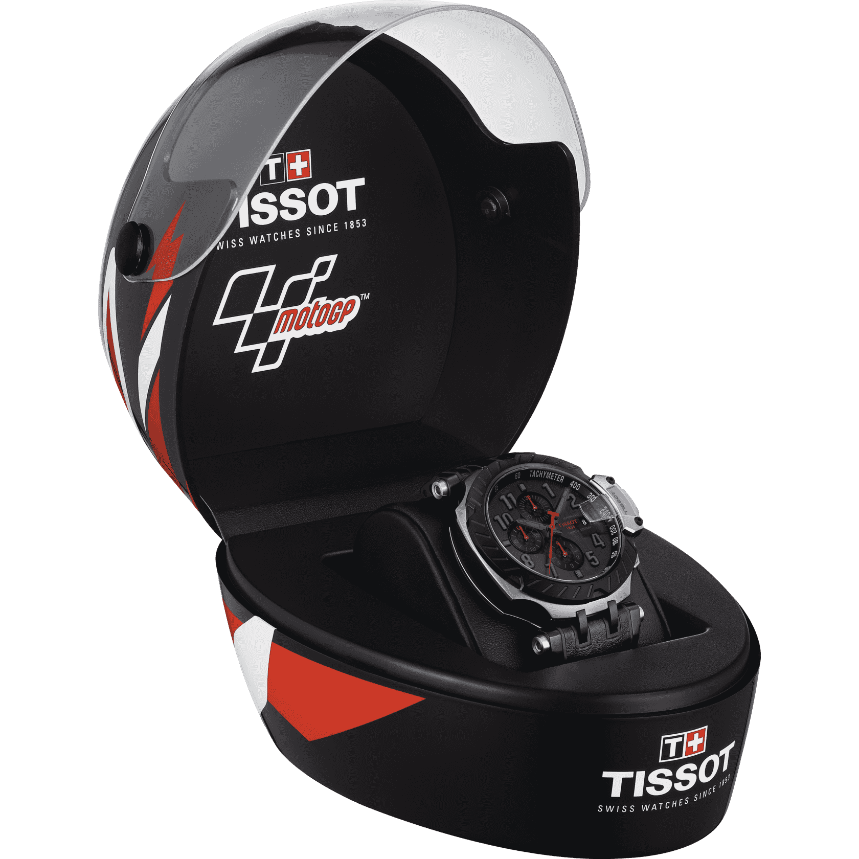 Лимитированный выпуск MotoGP (3333 экземпляра) Tissot T-Race MotoGP Automatic Chronograph Limited Edition T115.427.27.057.01, механический механизм (автоматический калибр) с высокой точностью. Сапфировое стекло устойчивое к появлению царапин, обладающее высокой прозрачностью. Класс водозащиты: 100 метров, позволит плавать, нырять и заниматься другими водными видами спорта. Корпус часов изготовлен из стали.