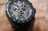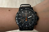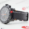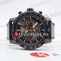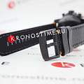 Современный хронографХронографФункция позволяет измерять отрезки времени с особой точностью: часы, минуты, секунды. Верным признаком хронографа является наличие на циферблате 3 дополнительных окошек-счётчиков. поможет подчеркнуть продуманный образ делового мужчины. Модель выполнена в спокойной тёмной расцветке. Спортивный дух выражается в коричневом ремешке из натуральной кожи с прострочкой, чёрном безелеБезельВнешний ободок, закрепляющий стекло. В спортивных часах так называется поворотное кольцо с делениями на циферблате, выполняет роль таймера – замеряет отрезки времени на шкале. Неподвижный безель – элемент декора. Однонаправленно вращающийся безель на дайверских часах позволяет фиксировать моменты погружения и выныривания на поверхность. со шкалой тахиметраТахиметрРазмеченная шкала, располагается на ободке или безеле часов. Тахиметр позволяет рассчитать скорость на определённом участке пути, расстояние измеряется в километрах или милях.. Наручные часы функционируют благодаря швейцарскому кварцевому механизму ETA G10.212. Калибр отличается максимальной точностью хода. Стекло из сапфира. Водостойкость 100 метров. Надёжный корпус из антикоррозионной стали 316L с чёрным PVD-покрытиемPVDУльтратонкое покрытие наносится в технике вакуумного напыления, сочетает в себе нитрид титана особой прочности со слоем золота или оксида хрома. Несёт в себе декоративную или защитную функцию.. Люминесцентная подсветкаЛюминесцентное покрытиеПозволяет считывать показания времени в темноте. Производители наносят на стрелки, часовые индексы, безель или поверхность циферблата светонакопительный состав, дающий холодное свечение. стрелок и индексов. Секундомер, отображение даты. Диаметр корпуса: 45,5 мм.
