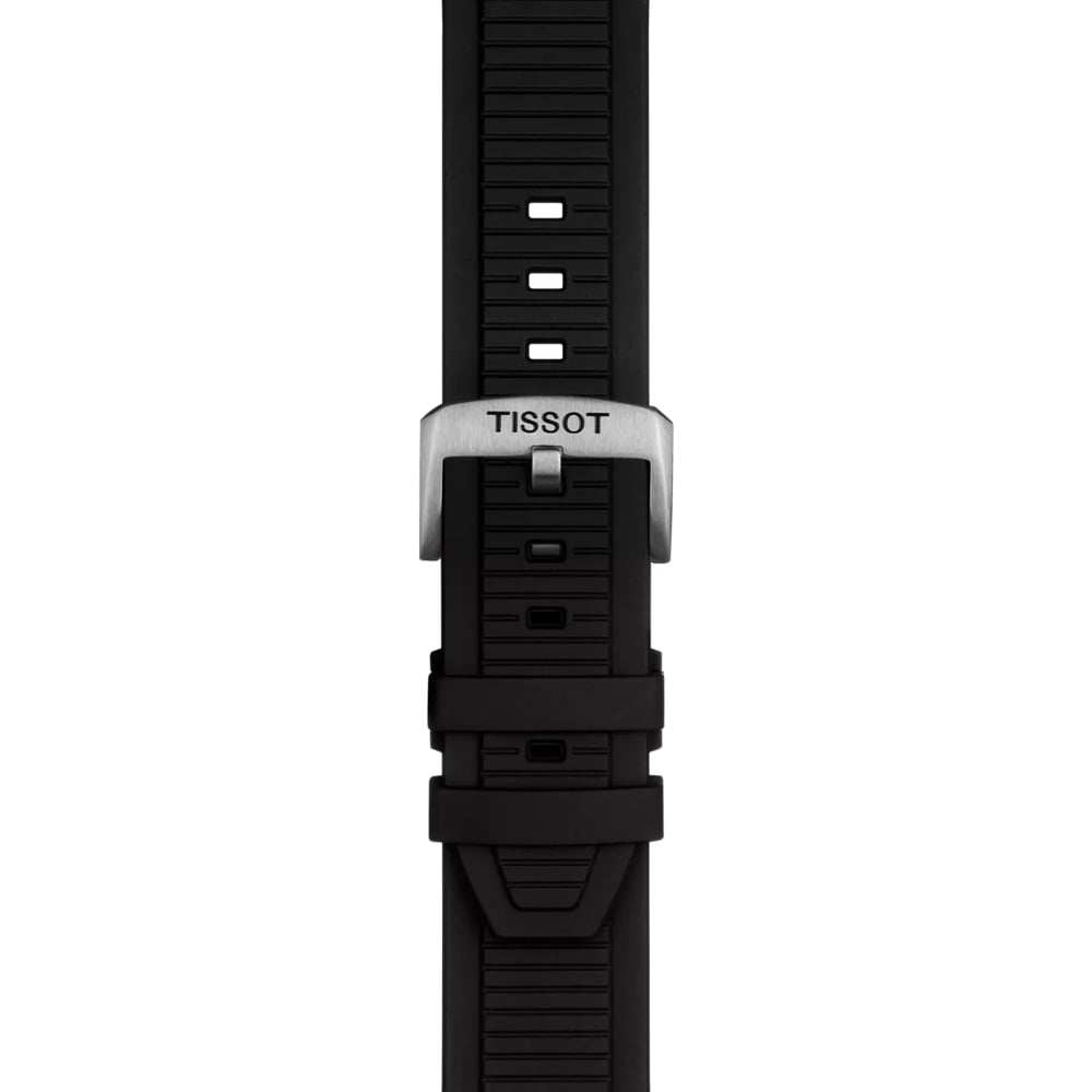 Tissot T-Race MotoGP Automatic Chronograph T141.462.27.041.00 – лимитированная серия мужских часов, выпущенная в количестве 2 025 экземпляров в честь более чем двадцатилетнего партнёрства Tissot с чемпионатом MotoGP™. Корпус диаметром 45 мм и толщиной 14,79 мм изготовлен из нержавеющей стали 316L безельБезельВнешний ободок, закрепляющий стекло. В спортивных часах так называется поворотное кольцо с делениями на циферблате, выполняет роль таймера – замеряет отрезки времени на шкале. Неподвижный безель – элемент декора. Однонаправленно вращающийся безель на дайверских часах позволяет фиксировать моменты погружения и выныривания на поверхность. с PVD-покрытиемPVDУльтратонкое покрытие наносится в технике вакуумного напыления, сочетает в себе нитрид титана особой прочности со слоем золота или оксида хрома. Несёт в себе декоративную или защитную функцию. в чёрном цвете, придающим часам современный и спортивный вид. Прозрачный циферблат защищён сапфировым стекломСапфировое стеклоПрочный и надёжный материал из кристалла сапфира синтетического происхождения, характеризующийся особой твёрдостью и устойчивостью к царапинам и повреждениям. с антибликовым покрытиемАнтибликовое покрытиеСлой оксида металла в 0,13-0,3 микрон, благодаря которому стекло часов не бликует и не отражает свет. Антибликовое покрытие уменьшает отражение света в 10 раз, обеспечивая отличную читаемость показателей циферблата., обеспечивающим устойчивость к царапинам и отличную читаемость. Сквозь прозрачную заднюю крышку можно наблюдать за работой механизма. Часы оснащены швейцарским автоматическим хронографомХронографФункция позволяет измерять отрезки времени с особой точностью: часы, минуты, секунды. Верным признаком хронографа является наличие на циферблате 3 дополнительных окошек-счётчиков. Tissot с калибром ValjouxValjouxПремиальный калибр от швейцарской компании ETA c уникальной отделкой механизма. Отличается увеличенным запасом хода от 45 до 60 часов, в зависимости от калибра, точность хода составляет +/- 5 секунд в сутки. A05.951, обеспечивающим запас хода до 68 часов. Функциональность включает центральную секундную стрелку хронографа, 12-часовой, 30-минутный и 60-секундный счётчики, а также запатентованную балансовую пружину Nivachron™Nivachron™Специально разработанный инновационный сплав Nivachron™ повышает устойчивость часов к воздействию магнитных полей., повышающую устойчивость к магнитным полям. Индексы и стрелки покрыты люминесцентным покрытиемЛюминесцентное покрытиеПозволяет считывать показания времени в темноте. Производители наносят на стрелки, часовые индексы, безель или поверхность циферблата светонакопительный состав, дающий холодное свечение. Super-LumiNova®, обеспечивающим отличную видимость в условиях низкой освещённости. Чёрный силиконовый ремешок с классической застёжкой обеспечивает комфортное ношение и надёжную фиксацию на запястье. Водозащита до 100 метров (10 бар) позволяет использовать часы во время плавания и других водных видов спорта. Каждые часы поставляются в фирменной упаковке в форме шлема, отражающей гоночную тематику и подчёркивающей эксклюзивность модели.