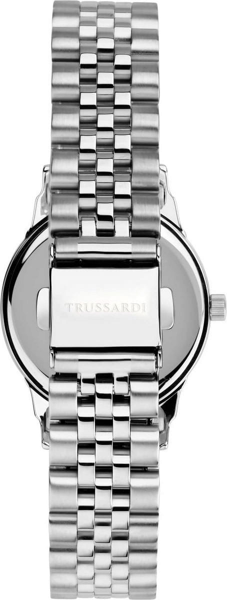 Итальянские женские часы Trussardi T-Bent R2453144510 - это стильный женский аксессуар, который сочетает элегантный дизайн и практичность. Корпус выполнен из нержавеющей стали, что обеспечивает долговечность и утончённый внешний вид. БезельБезельВнешний ободок, закрепляющий стекло. В спортивных часах так называется поворотное кольцо с делениями на циферблате, выполняет роль таймера – замеряет отрезки времени на шкале. Неподвижный безель – элемент декора. Однонаправленно вращающийся безель на дайверских часах позволяет фиксировать моменты погружения и выныривания на поверхность. с алмазной гранью. Надежное минеральное стеклоМинеральное стеклоМинеральное стекло представляет собой искусственно выращенный минерал кварца. Такое стекло отличается особой устойчивостью к повреждениям и царапинам. Уступает по некоторым качествам сапфировому стеклу. защищает циферблат с кристаллами от царапин и обеспечивает долговечность. Модель оснащена кварцевым механизмом, обеспечивающим высокую точность хода. Браслет из нержавеющей стали на раскладной застёжкеРаскладная застёжкаТакой тип застёжки используется только на браслетах из металла. Она никогда не раскрывается полностью, происходит разделение на 2 и более частей. Раскладывающая застёжка снизит вероятность потери часов к минимуму. обеспечивает комфортное ношение. Водозащита 50 метров позволит защитить корпус от случайных брызг или капель дождя. Эта модель – отличный выбор для тех, кто ищет сочетание стиля, качества и функциональности. Часы станут не только полезным аксессуаром, но и выразительным элементом вашего имиджа.