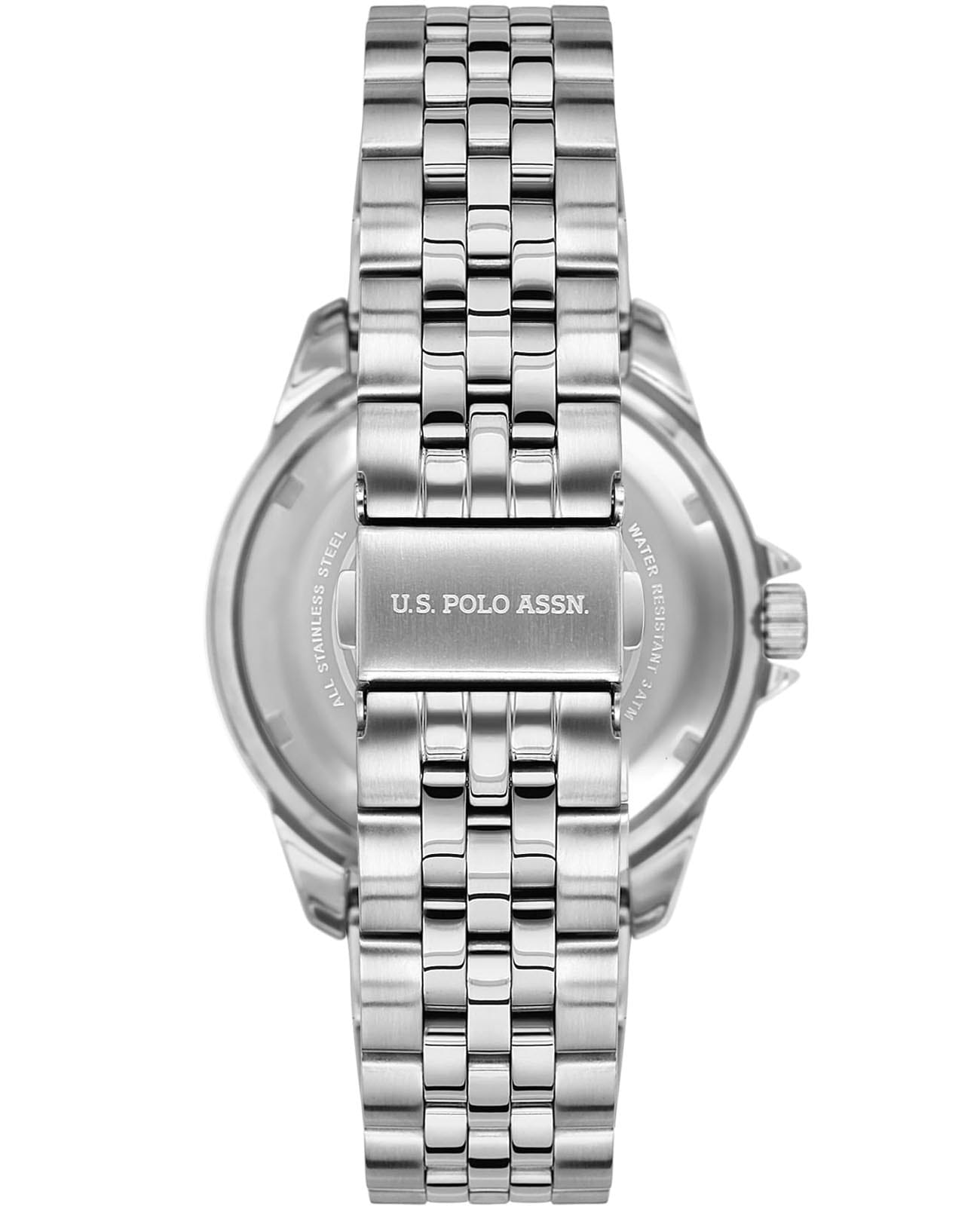 Мужские часы U.S. Polo Assn. Fundamental USPA1048-05, кварцевый механизм с высокой точностью. Минеральное стеклоМинеральное стеклоМинеральное стекло представляет собой искусственно выращенный минерал кварца. Такое стекло отличается особой устойчивостью к повреждениям и царапинам. Уступает по некоторым качествам сапфировому стеклу. устойчивое к появлению царапин, обладающее высокой прозрачностью. Центральные часовая, минутная и секундная стрелки. Корпус изготовлен из нержавеющей стали. Класс водозащиты: 50 метров, позволит защитить корпус от случайных брызг или капель дождя. Стальной браслет на раскладной застёжкеРаскладная застёжкаТакой тип застёжки используется только на браслетах из металла. Она никогда не раскрывается полностью, происходит разделение на 2 и более частей. Раскладывающая застёжка снизит вероятность потери часов к минимуму.. Стрелки и метки с люминесцентным покрытиемЛюминесцентное покрытиеПозволяет считывать показания времени в темноте. Производители наносят на стрелки, часовые индексы, безель или поверхность циферблата светонакопительный состав, дающий холодное свечение.. БезельБезельВнешний ободок, закрепляющий стекло. В спортивных часах так называется поворотное кольцо с делениями на циферблате, выполняет роль таймера – замеряет отрезки времени на шкале. Неподвижный безель – элемент декора. Однонаправленно вращающийся безель на дайверских часах позволяет фиксировать моменты погружения и выныривания на поверхность. с IP-покрытиемIP-покрытиеМетод ионного напыления. Демонстрирует повышенную устойчивость к истиранию, окислению и химическим веществам. Под воздействием высокого давления и температуры около 1500°C молекулы металла надёжно соединяются с частицами корпуса часов.. Окошко даты находится в положении 3 часа.