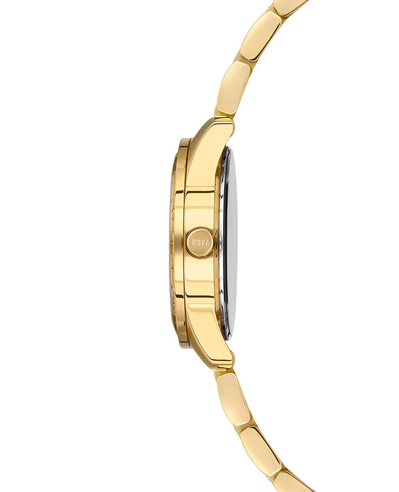 Женские часы U.S. Polo Assn Stile USPA2064-04, кварцевый механизм с высокой точностью. Минеральное стеклоМинеральное стеклоМинеральное стекло представляет собой искусственно выращенный минерал кварца. Такое стекло отличается особой устойчивостью к повреждениям и царапинам. Уступает по некоторым качествам сапфировому стеклу. устойчивое к появлению царапин, обладающее высокой прозрачностью. Корпус изготовлен из нержавеющей стали с IP-покрытиемIP-покрытиеМетод ионного напыления. Демонстрирует повышенную устойчивость к истиранию, окислению и химическим веществам. Под воздействием высокого давления и температуры около 1500°C молекулы металла надёжно соединяются с частицами корпуса часов.. БезельБезельВнешний ободок, закрепляющий стекло. В спортивных часах так называется поворотное кольцо с делениями на циферблате, выполняет роль таймера – замеряет отрезки времени на шкале. Неподвижный безель – элемент декора. Однонаправленно вращающийся безель на дайверских часах позволяет фиксировать моменты погружения и выныривания на поверхность. украшен кристаллами. Класс водозащиты: 50 метров, позволит защитить корпус от случайных брызг или капель дождя. Стальной браслет с IP-покрытиемIP-покрытиеМетод ионного напыления. Демонстрирует повышенную устойчивость к истиранию, окислению и химическим веществам. Под воздействием высокого давления и температуры около 1500°C молекулы металла надёжно соединяются с частицами корпуса часов. на раскладной застёжкеРаскладная застёжкаТакой тип застёжки используется только на браслетах из металла. Она никогда не раскрывается полностью, происходит разделение на 2 и более частей. Раскладывающая застёжка снизит вероятность потери часов к минимуму..