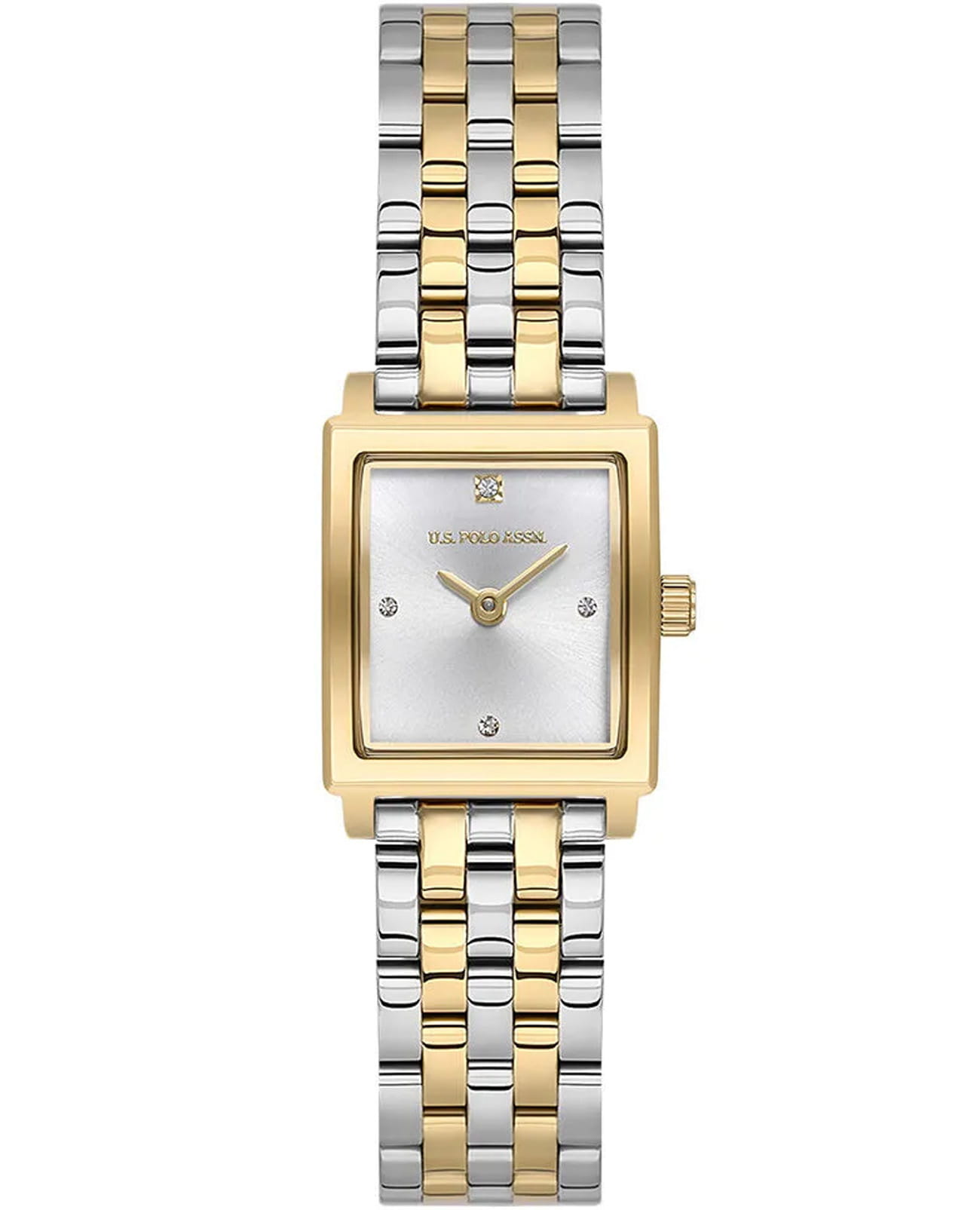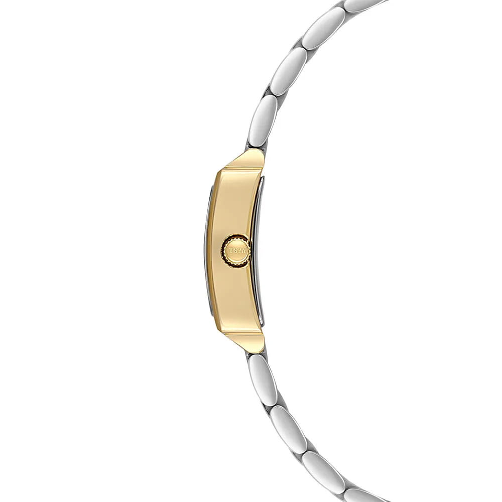 Женские наручные часы U.S. Polo Assn. Stile USPA2107-05 — это стильный и лаконичный аксессуар, выполненный в форме квадрата. Модель изготовлена из стали с IP-покрытиемIP-покрытиеМетод ионного напыления. Демонстрирует повышенную устойчивость к истиранию, окислению и химическим веществам. Под воздействием высокого давления и температуры около 1500°C молекулы металла надёжно соединяются с частицами корпуса часов., придающий благородный внешний вид и устойчивость к царапинам. Циферблат с кристаллами дополнен лаконичными центральными часовой и минутной стрелками. Защиту циферблата обеспечивает минеральное стеклоМинеральное стеклоМинеральное стекло представляет собой искусственно выращенный минерал кварца. Такое стекло отличается особой устойчивостью к повреждениям и царапинам. Уступает по некоторым качествам сапфировому стеклу., устойчивое к мелким повреждениям. Часы оснащены кварцевым механизмом, гарантирующим точность и минимальное обслуживание. Водонепроницаемость 3 АТМ позволяет использовать часы в повседневных условиях — при мытье рук или под лёгким дождём. Браслет выполнен из стали с IP-покрытиемIP-покрытиеМетод ионного напыления. Демонстрирует повышенную устойчивость к истиранию, окислению и химическим веществам. Под воздействием высокого давления и температуры около 1500°C молекулы металла надёжно соединяются с частицами корпуса часов. и оснащён раскладной застёжкойРаскладная застёжкаТакой тип застёжки используется только на браслетах из металла. Она никогда не раскрывается полностью, происходит разделение на 2 и более частей. Раскладывающая застёжка снизит вероятность потери часов к минимуму., обеспечивающей комфорт и уверенную фиксацию на запястье. Толщина корпуса составляет 7 мм, а его размер 19 мм, что делает часы компактными и удобными в носке. Эти часы станут универсальным аксессуаром для уверенных в себе женщин, которые ценят сочетание стиля, качества и эстетики — идеальный выбор для повседневного образа и торжественных случаев.