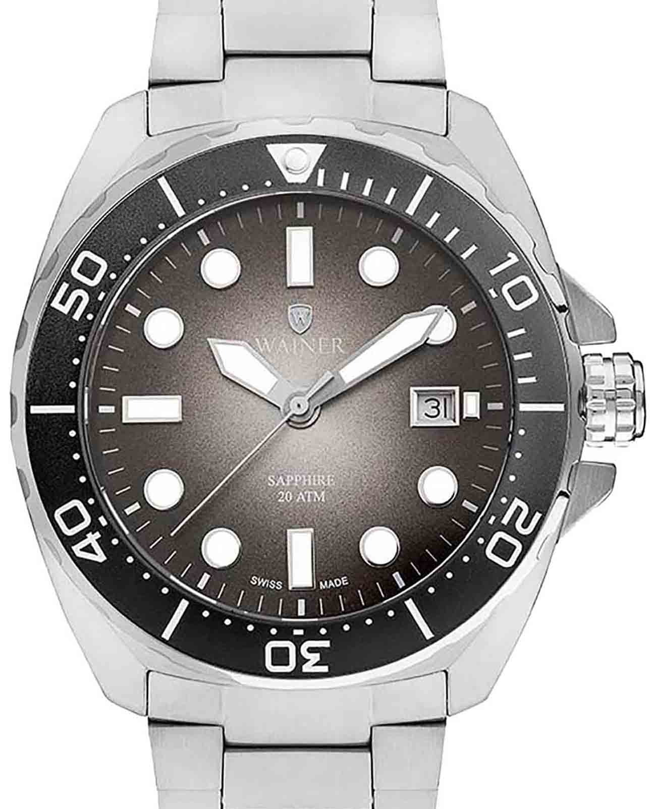 Швейцарские мужские кварцевые часы Wainer WA.10921-A с механизмом калибра Ronda 515 сочетают в себе надежность и стильный дизайн. Круглый корпус из нержавеющей стали 316L с частичным PVD-покрытиемPVDУльтратонкое покрытие наносится в технике вакуумного напыления, сочетает в себе нитрид титана особой прочности со слоем золота или оксида хрома. Несёт в себе декоративную или защитную функцию. диаметром 44 мм защищен прочным сапфировым стекломСапфировое стеклоПрочный и надёжный материал из кристалла сапфира синтетического происхождения, характеризующийся особой твёрдостью и устойчивостью к царапинам и повреждениям.. Циферблат украшен фирменным логотипом Wainer, метками в виде точек и штрихов, а также оснащен окошком даты в положении 3 часа. Рифленая заводная головка с защитой обеспечивает дополнительную надежность механизма. Часы имеют класс водозащиты 200 метров, позволит плавать, нырять и заниматься другими водными видами спорта. Модель комплектуется стальным браслетом из нержавеющей стали 316L на застёжке-бабочке с кнопкамиЗастёжка "бабочка"Такой вид застёжки дополняется предохранителями, помогающими избежать случайного раскрытия браслета. Обладают изящным исполнением. . Высокий уровень водонепроницаемости делает эти часы идеальным выбором для активного образа жизни, позволяя не расставаться с ними даже в воде. Прочный корпус и надежный механизм гарантируют долговечность использования.