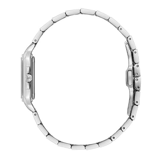 Женские кварцевые часы Wainer WA.18080-E — это изысканный аксессуар, воплощающий швейцарское качество и элегантность. Модель выполнена в квадратной форме из стали 316L, а её корпус украшен люминесцентным покрытиемЛюминесцентное покрытиеПозволяет считывать показания времени в темноте. Производители наносят на стрелки, часовые индексы, безель или поверхность циферблата светонакопительный состав, дающий холодное свечение. и инкрустирован кристаллами, что придаёт ему роскошный внешний вид. Циферблат серебристого цвета гильоширован и дополнен римскими цифрами, а секундная стрелка на конце декорирована буквой W, подчёркивая внимание к деталям. Защиту механизма обеспечивает сапфировое стеклоСапфировое стеклоПрочный и надёжный материал из кристалла сапфира синтетического происхождения, характеризующийся особой твёрдостью и устойчивостью к царапинам и повреждениям., устойчивое к повреждениям. Гранёная заводная головка с защитой оснащена фирменным логотипом, добавляя модели индивидуальности. Браслет из стали 316L с частичным PVD-покрытиемPVDУльтратонкое покрытие наносится в технике вакуумного напыления, сочетает в себе нитрид титана особой прочности со слоем золота или оксида хрома. Несёт в себе декоративную или защитную функцию. шириной 16 мм оснащён Раскладная застёжкаРаскладная застёжкаТакой тип застёжки используется только на браслетах из металла. Она никогда не раскрывается полностью, происходит разделение на 2 и более частей. Раскладывающая застёжка снизит вероятность потери часов к минимуму., обеспечивающей комфорт и надёжную фиксацию на запястье. Водонепроницаемость позволяет использовать модель при мытье рук или под лёгким дождём. Механизм калибра Ronda 763 гарантирует точность хода и надёжность. Эти часы станут универсальным аксессуаром для тех, кто ценит сочетание стиля, функциональности и швейцарского мастерства — идеальный выбор для повседневной носки и торжественных случаев.