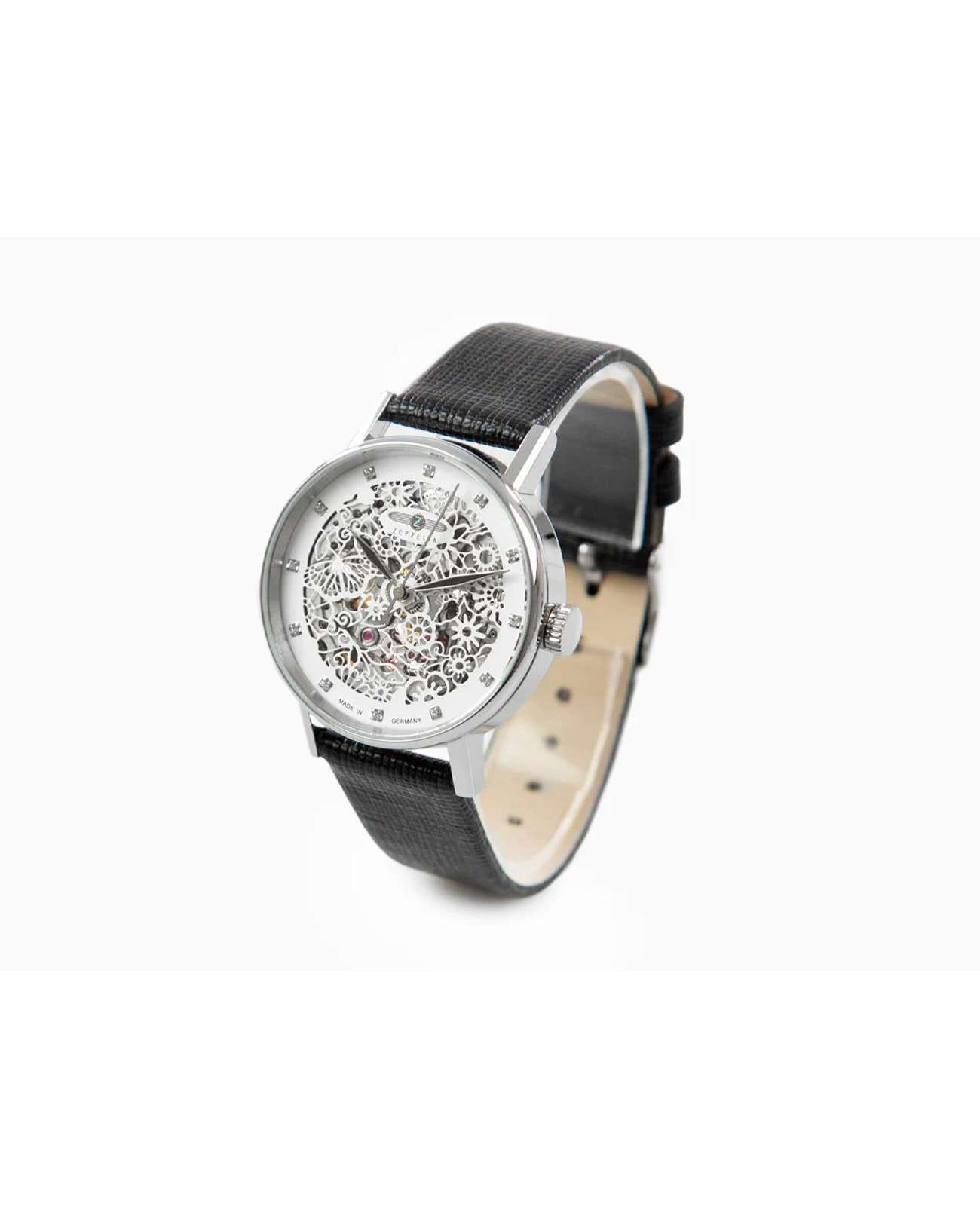 Женские наручные часы Zeppelin Princess of the Sky 7461-1 представляют собой изысканный скелетонизированный дизайн, где механизм украшен сверкающими кристаллами Swarovski. Модель обладает круглым корпусом диаметром 36 мм, изготовленным из нержавеющей стали, что обеспечивает высокую устойчивость к внешним воздействиям. Браслет выполнен из качественной текстурированной кожи, контрастирующей с металлическими элементами. Для защиты механизма используется минеральное стеклоМинеральное стеклоМинеральное стекло представляет собой искусственно выращенный минерал кварца. Такое стекло отличается особой устойчивостью к повреждениям и царапинам. Уступает по некоторым качествам сапфировому стеклу. с антибликовое покрытиеАнтибликовое покрытиеСлой оксида металла в 0,13-0,3 микрон, благодаря которому стекло часов не бликует и не отражает свет. Антибликовое покрытие уменьшает отражение света в 10 раз, обеспечивая отличную читаемость показателей циферблата., обеспечивающее прочную защиту от царапин и оптимальную видимость циферблата. Часы работают на автоматическом механизме, заряжаемом за счет естественного движения руки пользователя, что делает их автономными в использовании. Водонепроницаемость часов составляет 5 атмосфер (50 метров), что позволяет использовать их в повседневных условиях, однако не рекомендуется для плавания или дайвинга. Эта модель отличается своей элегантностью и станет прекрасным дополнением как к повседневному, так и к вечернему образу.